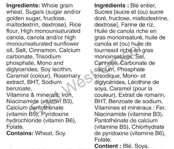 Contains: Wheat, soy lecithin; no artificial colours or flavours