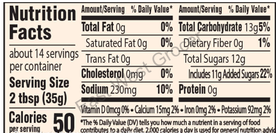 Calories: 50 kcal per serving (2 Tbsp / 35 g)